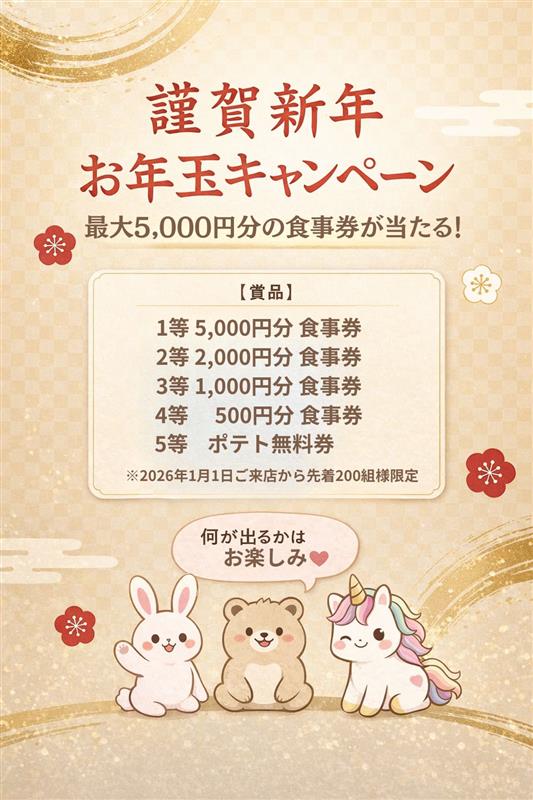 お年玉キャンペーン!最大5,000円分のお食事券が当たる!