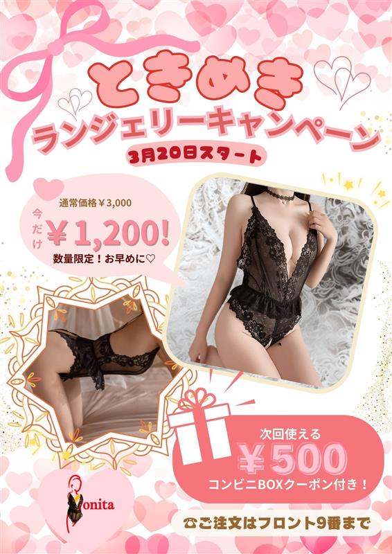 2月2日 午後12時よりランジェリー販売をはじめます!